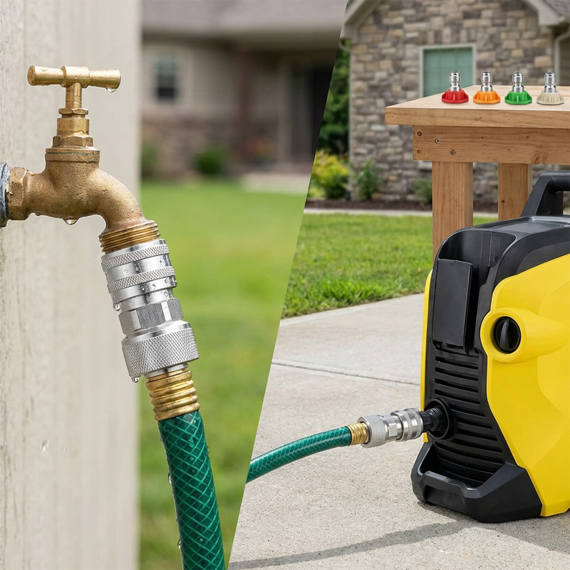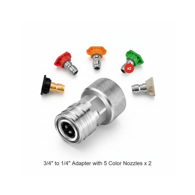 GYORS CSATLAKOZÓ ÁTALAKÍTÓ - Könnyedén átalakítja a szokásos kerti tömlőt 1/4 hüvelykes gyorscsatlakozó kimenetté. Ez lehetővé teszi a nyomásmosó pálcák, fúvókák és egyéb kiegészítők gyors csatlakoztatását és leválasztását, jelentősen felgyorsítva a tisztítási feladatokat.