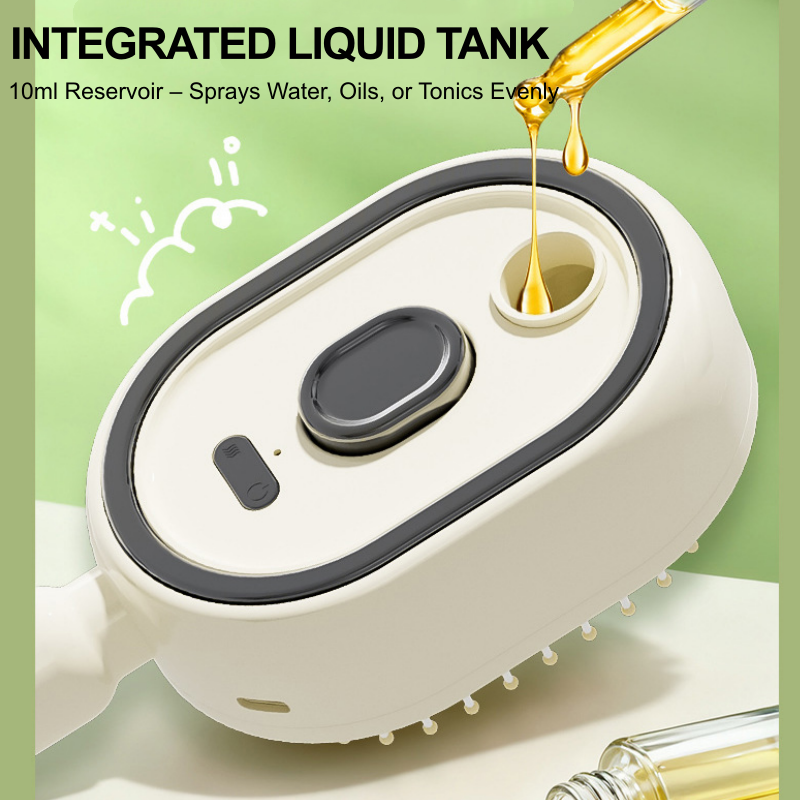 INTEGRÁLT FOLYADÉKTARTÁLY – A beépített 10 ml-es tartályba vizet, illóolajokat vagy hajtonikokat tölthet. A finom porlasztás biztosítja az egyenletes eloszlást a fejbőr teljes táplálása érdekében.
