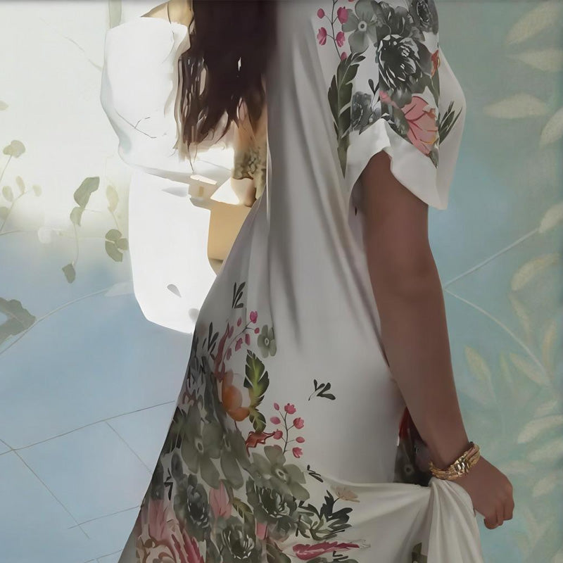【S-4XL】🌺Laza V-nyakú hajtókás tervezés virágos ruha