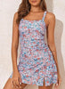 Vintage 2 darabos tankini szett: Skirtini Tankini, Tankini Top Bikini Alsóval, Ruched Swim Tank Top, Square Neck Tankini Set Side Slit szoknyával, Open Back fürdőruha, Push Up fürdőruha kivehető puha párnázással nagyszerű támogatást nyújt és kiemeli az alakját.